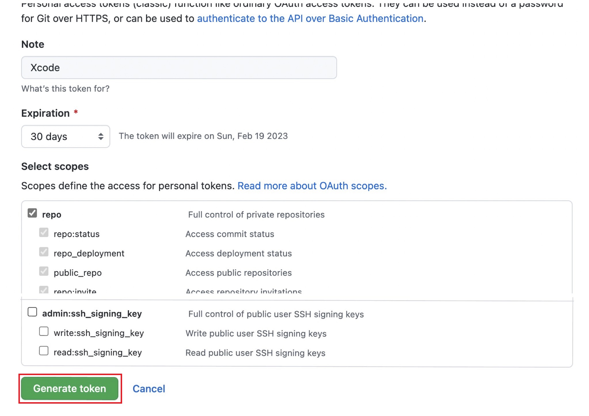 Generate new token (classic) 선택