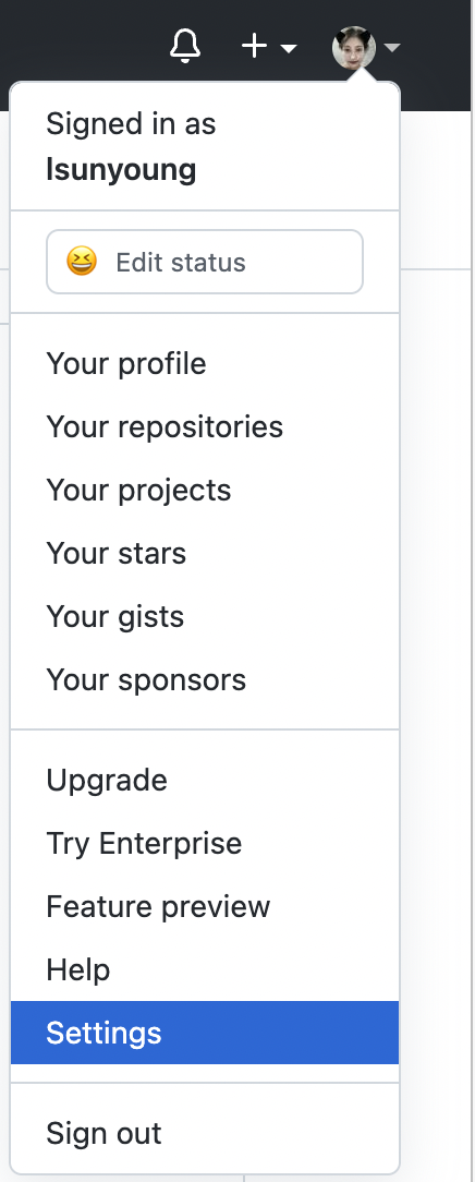 GitHub 접속 -> Settings 진입