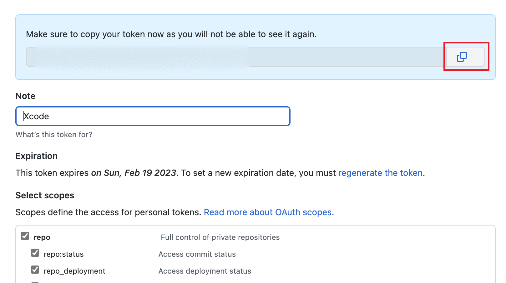 생성된 토큰 복사 후 사용(토큰값은 절대 노출되어선 안됨)